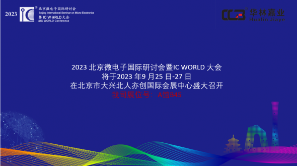 北京華林嘉業(yè)科技有限公司將于2023年9月25日至27日參加2023北京微電子國際研討會暨IC WORLD大會,地點為北京市大興區(qū)北人亦創(chuàng)國際會展中心,現(xiàn)誠邀各界同仁蒞臨A-B45號展位參觀考察洽談業(yè)務! ...