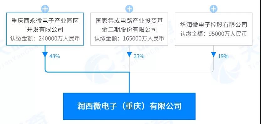 6月7號,華潤微發布公告,計劃與國家大基金二期及重慶西永共同簽署投資協議,發起設立潤西微電子(重慶)有限公司,該公司注冊資本擬為50億元,其中華潤微擬以自有資金出資9.5億元,出資完成后占項目公司注冊資本的19%。