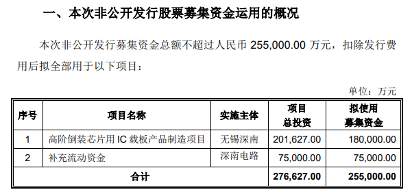 昨日(8月2日),深南電路發(fā)布2021年度非公開發(fā)行A股股票預(yù)案,擬募集資金不超過25.50億元,其中18.00億元用于高階倒裝芯片用IC載板產(chǎn)品制造項目、7.50億元用于補(bǔ)充流動資金。