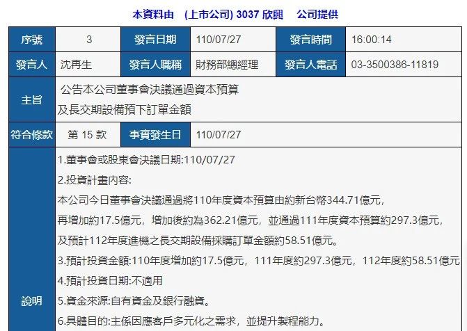 7月28日,欣興電子財務(wù)部總經(jīng)理沈再生在法說會上表示,從2019年到2023年,預(yù)計總共投入資本支出將高達(dá)新臺幣千億元,其中85%以上用來擴(kuò)充IC載板產(chǎn)能。其中,欣興今年資本支出最高,歷經(jīng)四度上調(diào)后,欣興今年資本支出已至新臺幣362.21億元。