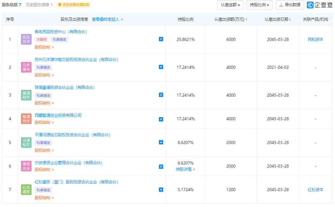 股東信息方面,企查查顯示榮芯半導體的股東包括青島民蕊投資中心、蘇州元禾璞華、珠海鋆瀾投資、西藏智通創業投資、平潭馮源繪芯股權投資、寧波德賢企業管理合伙企業、紅杉建辰(廈門)股權投資,分別持股約25.86%、17.24%、17.24%、17.24%、8.62%、8.62%、5.17%。
